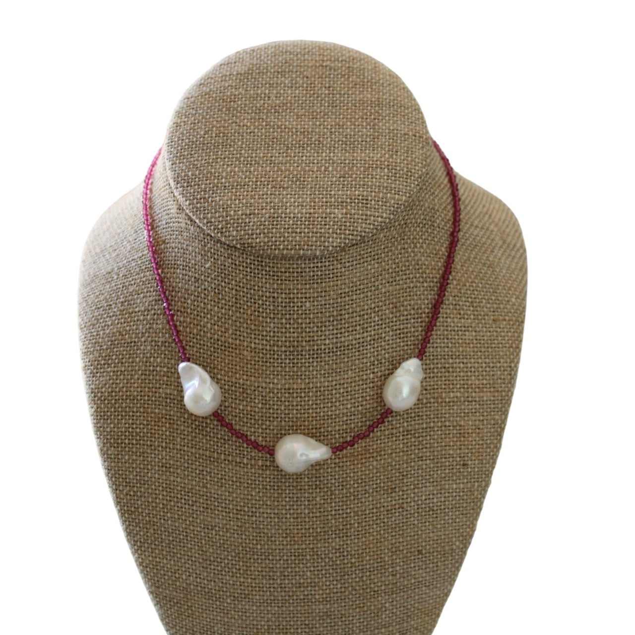 Necklace is 15.5”. Made with cz beads, baroque pearls and gold filled findings.