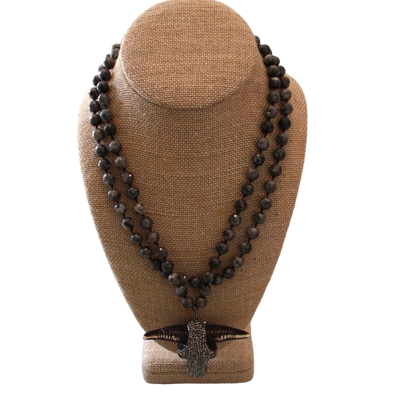 Labradorite Knotted Necklace w/ Bull Pendant